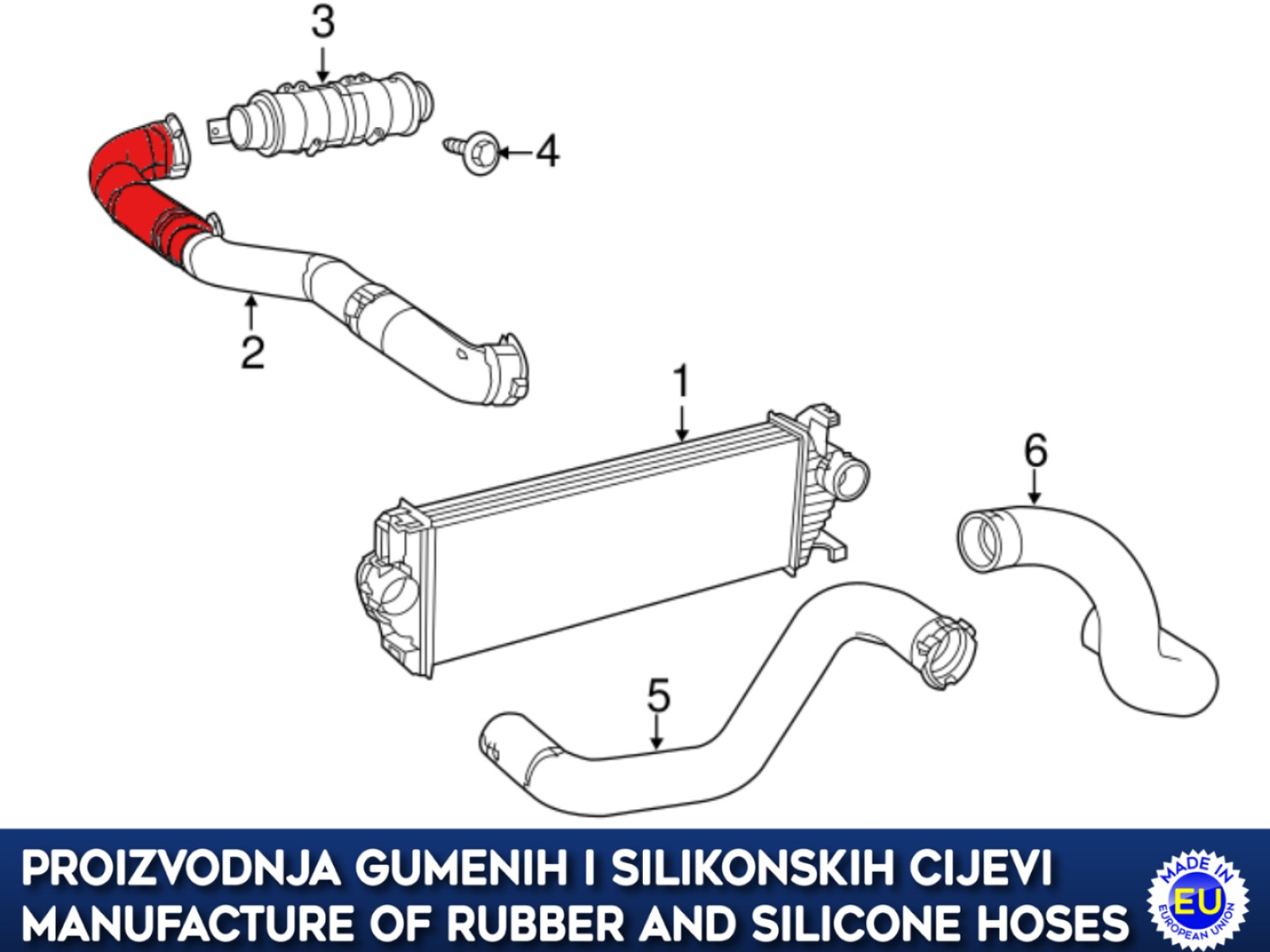 Zamjensko crijevo intercoolera i turbine JEEP GRAND CHEROKEE 3.0 CRD, 052014481AA, 052014481AB, 052014481AC, 052014481AD, 052014481AE, 052014481AF, 052014481AG, 52014481AA, 52014481AB, 52014481AC