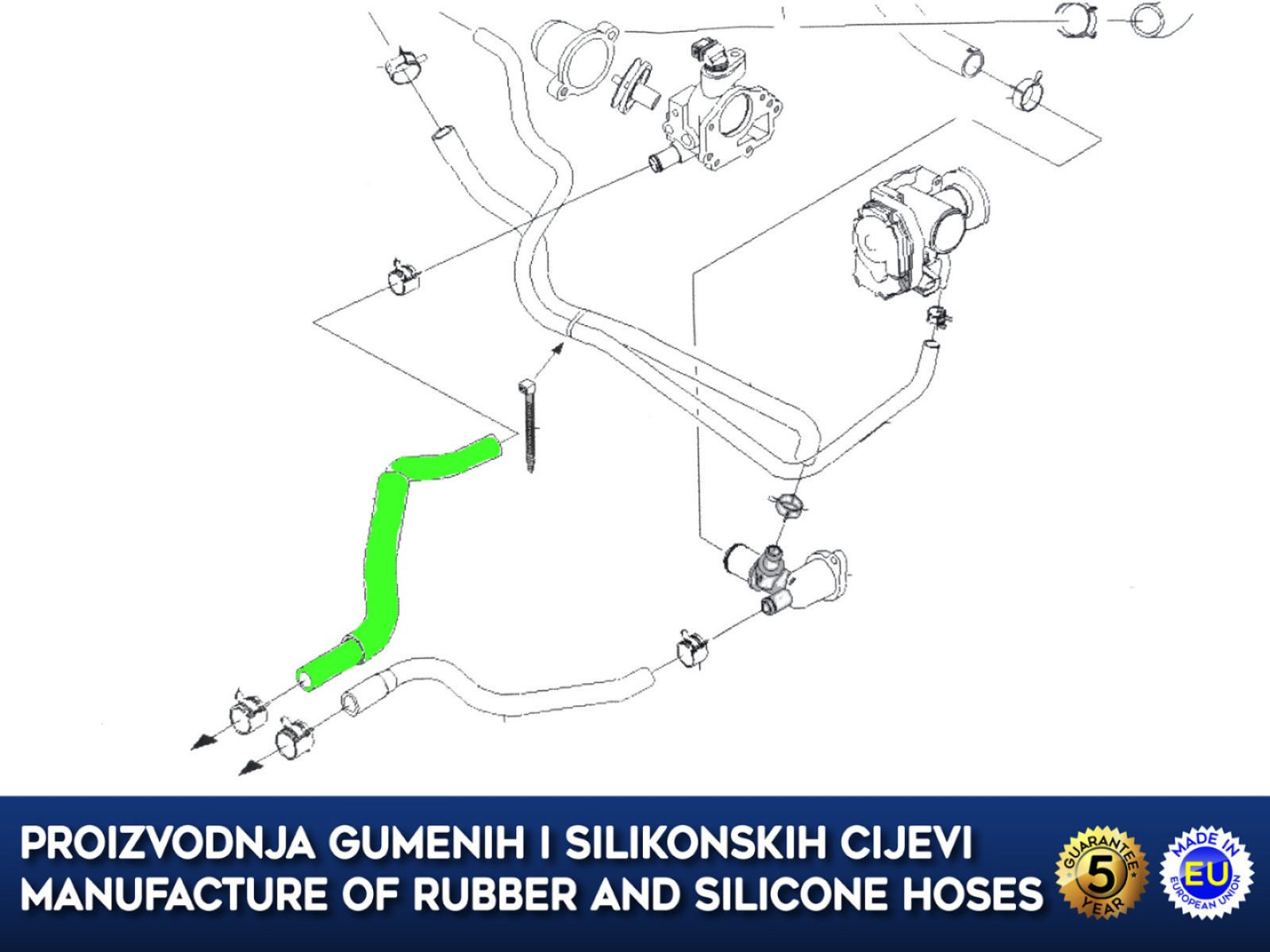 Made of rubber resistant to coolant liquid, aging and temperature.