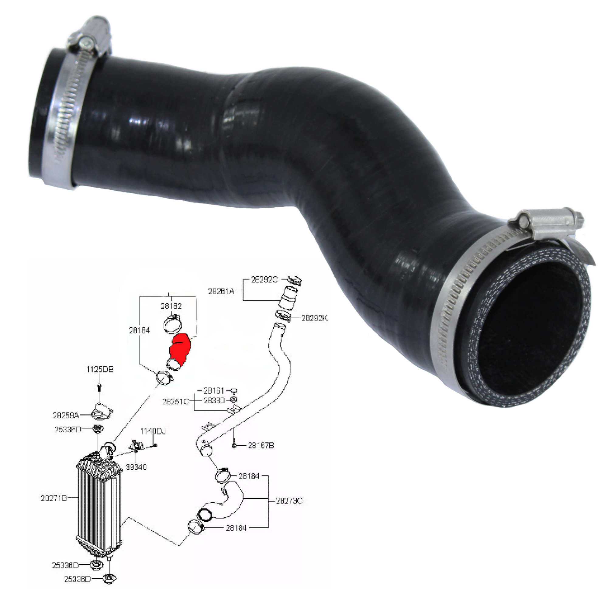 Replacement turbo hose HYUNDAI KIA 1.4 / 1.6 / 1.7  CRDI, 28274-2A540, 282742A540