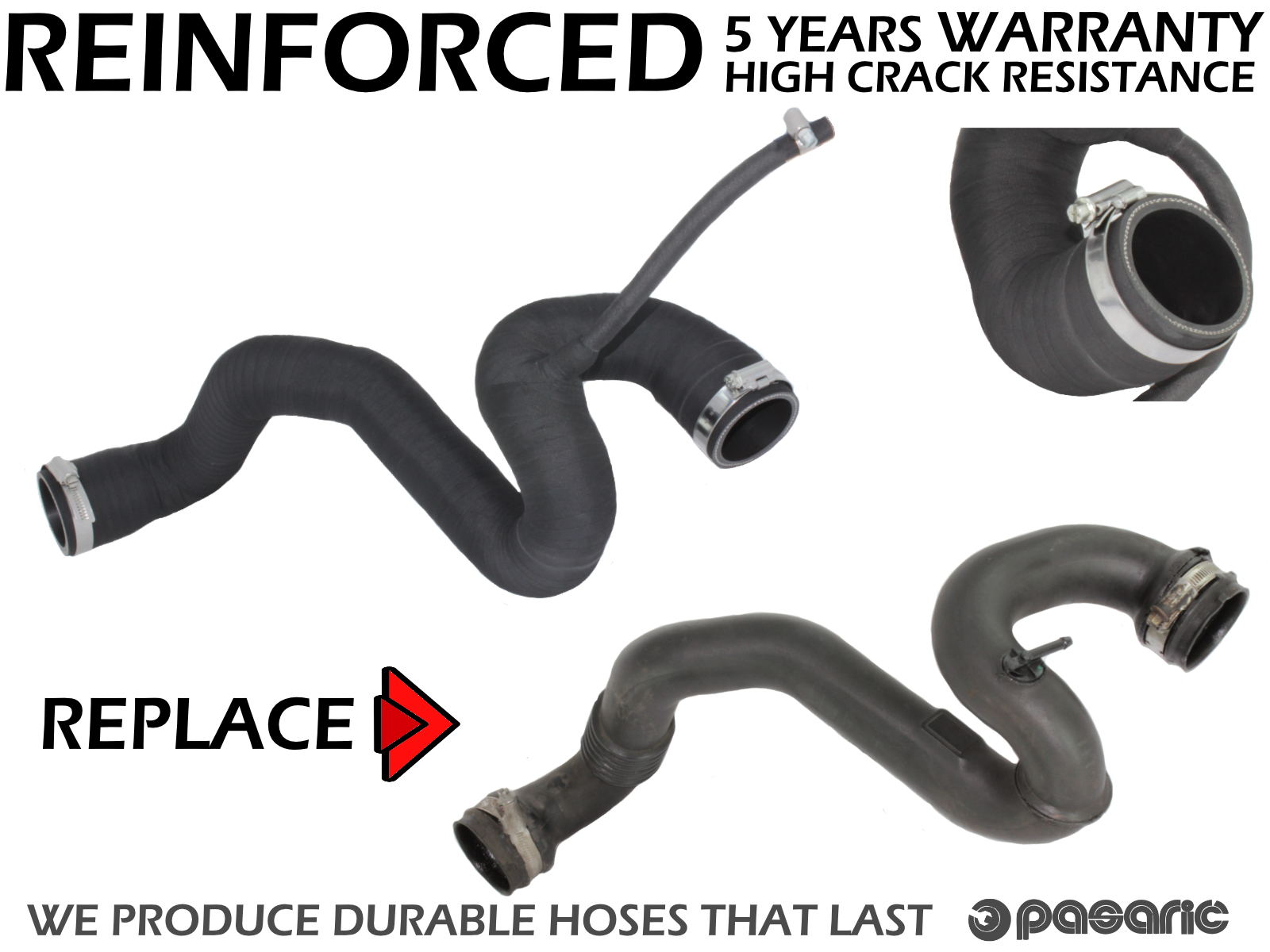 Our replacement hose matches the original hose under the specified OE number.