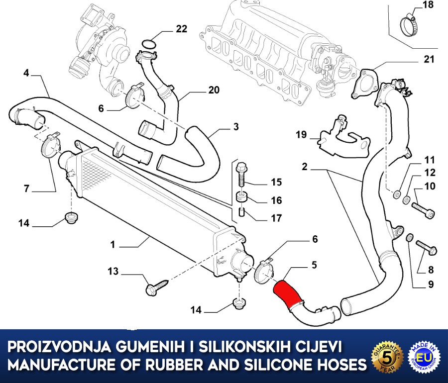 Rubber intercooler and intake manifold for LANCIA DELTA, FIAT BRAVO II, 1.6 JTD