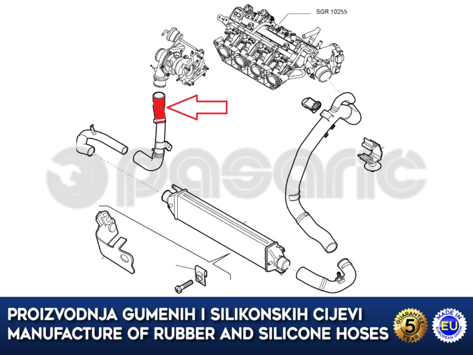 Gumeno crijevo intercoolera i turbine za FIAT GRANDE PUNTO  / ALFA ROMEO MITO 1.4 T JET