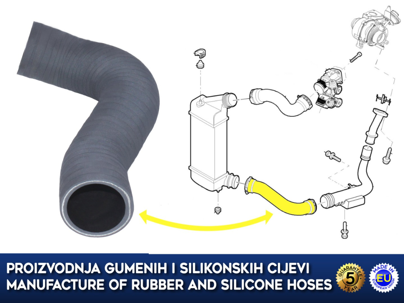 Gumena cijev intercoolera i turbine za CITROEN C8 JUMPY, PEUGEOT EXPERT 807, LANCIA PHEDRA, FIAT SCUDO ULYSSE, 2.0 JTD