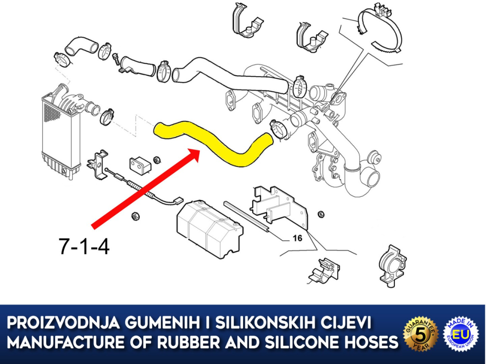 Proizvedeno od gume otporne na ulja, starenje i temperaturu.