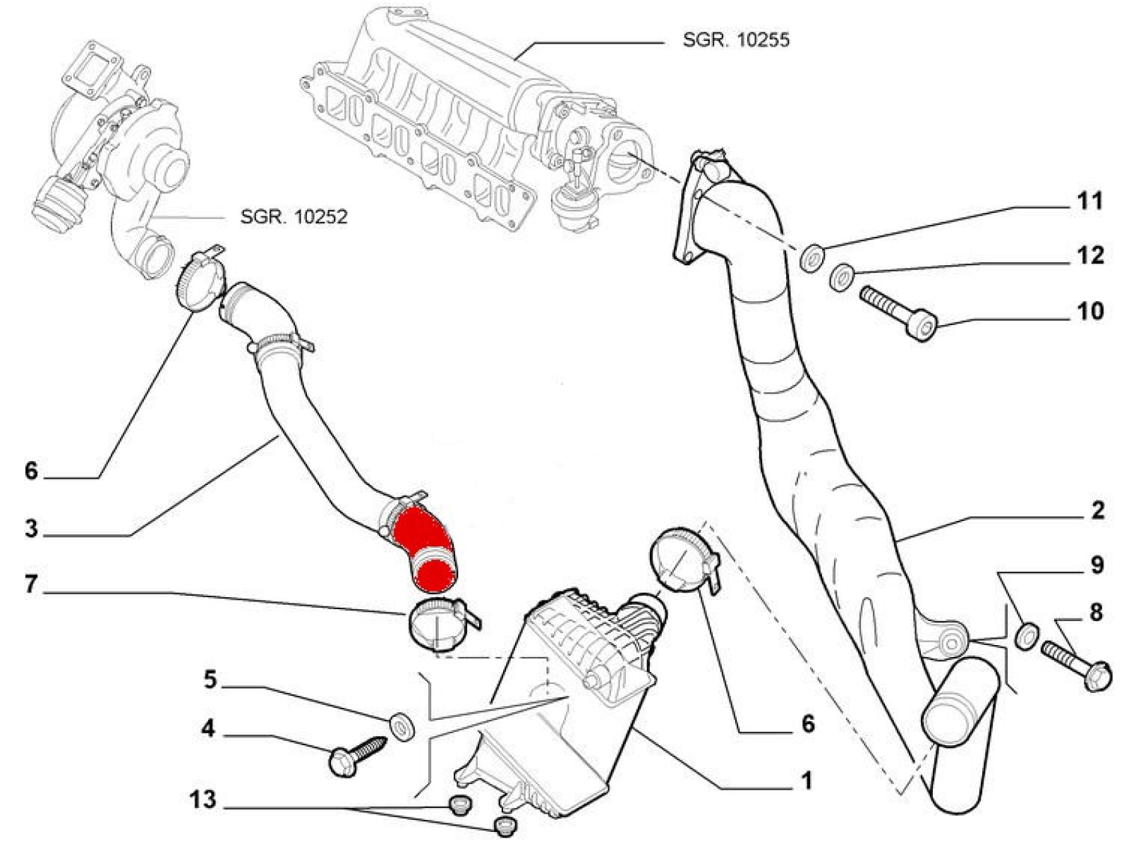 Gumeno crijevo od intercoolera do turbine za FIAT STILO 1.9 JTD, donje