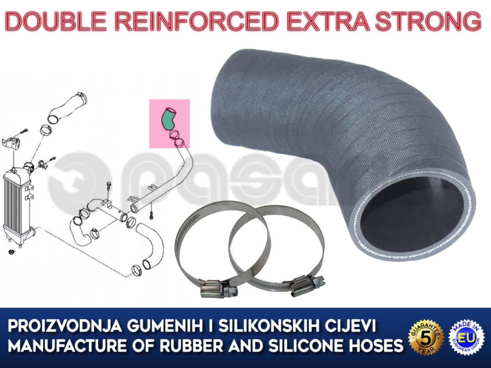 Proizvedeno od gume otporne na ulja, starenje i temperaturu.