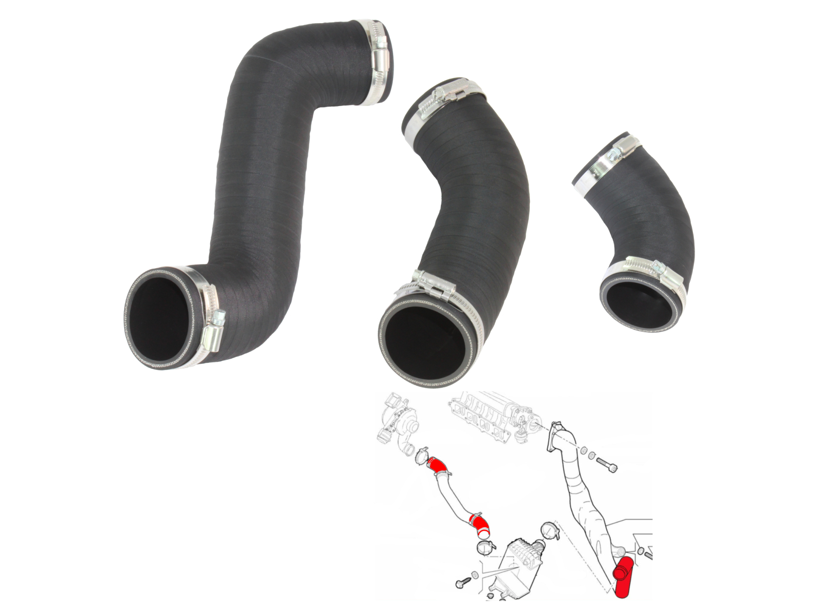 U ovom setu nalaze se 3 crijeva, dva od međuhladnjaka do turbo punjača, jedno od međuhladnjaka do usisne grane.