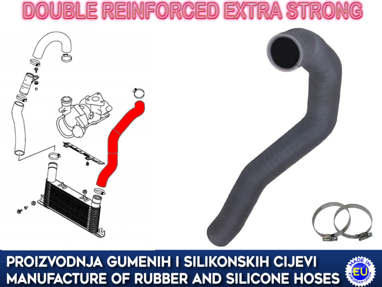 Proizvedeno od gume otporne na ulja, starenje i temperaturu.