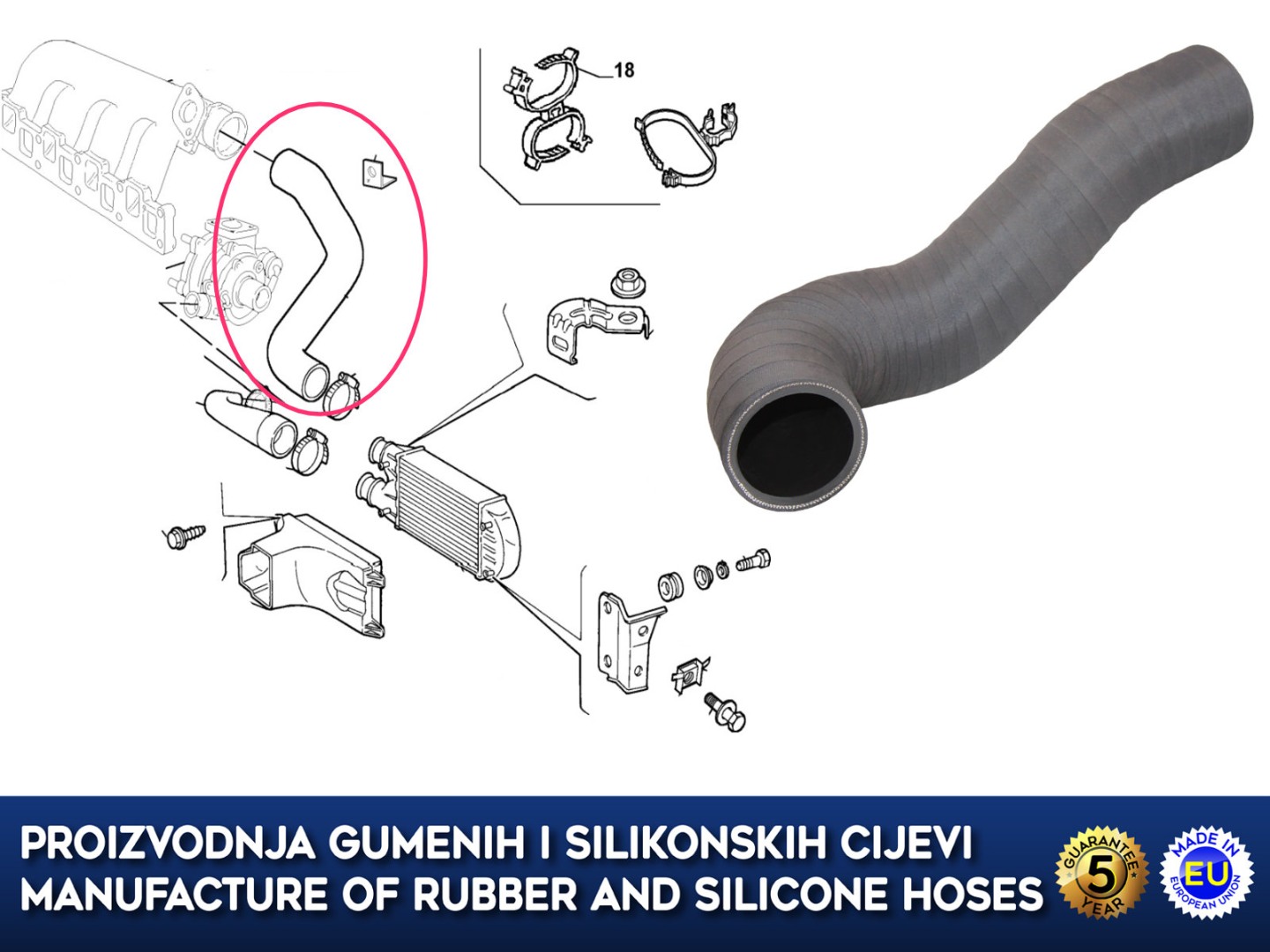 Naše zamjensko crijevo odgovara originalnom crijevu pod navedenim OE brojem.