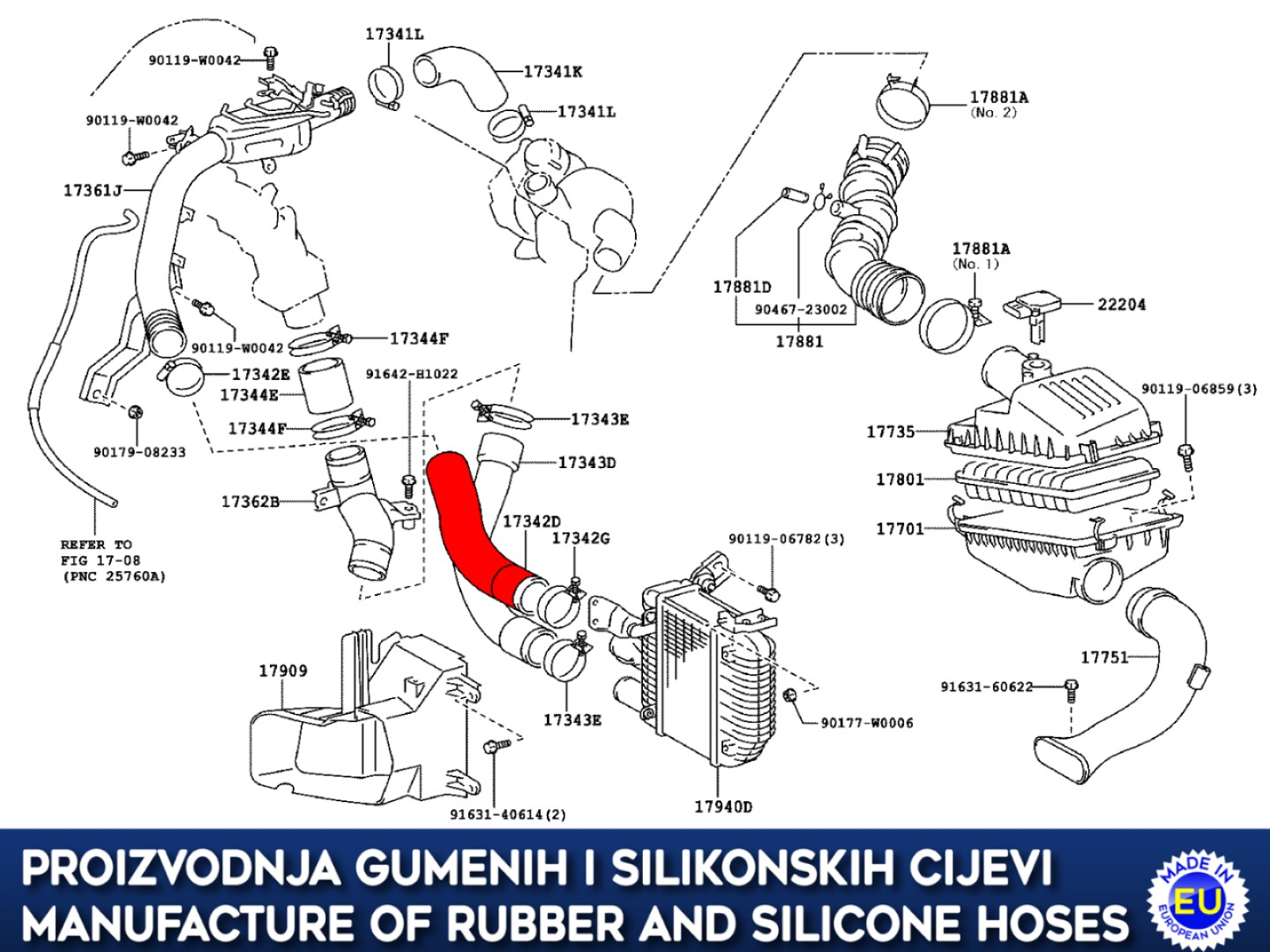 Intercooler and turbine hose for TOYOTA AVENSIS 2.0 D4D, TOYOTA COROLLA 2.0 D4D, TOYOTA COROLLA VERSO 2.0 D4D