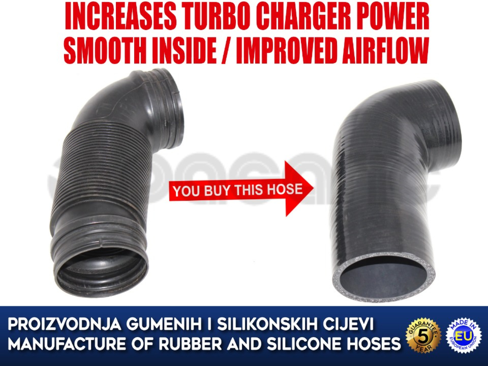 Prednost ovog crijeva je glatka unutrašnjost što omogučuje bolji protok zrak te se time povećava snaga motora.