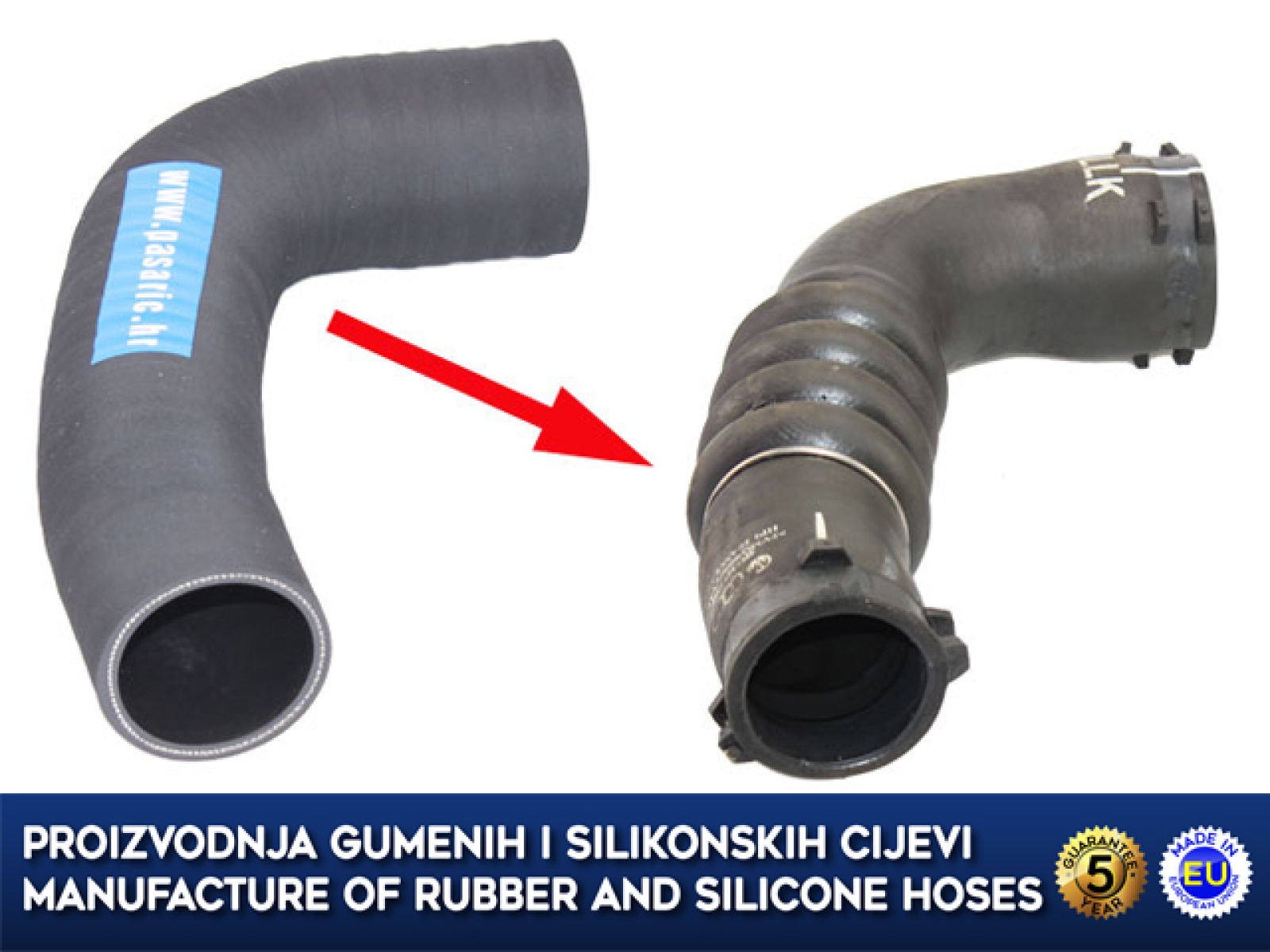 Proizvedeno od gume otporne na ulja, starenje i temperaturu.