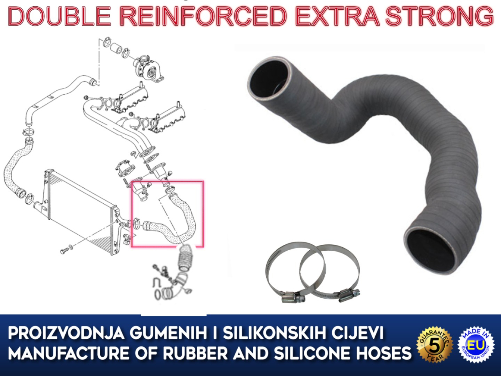 Proizvedeno od gume otporne na ulja, starenje i temperaturu.